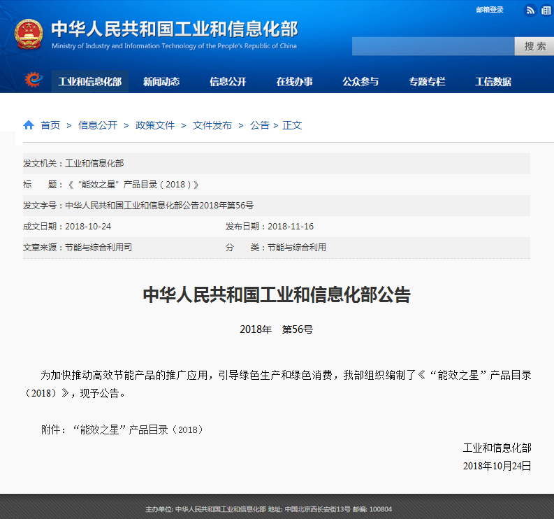 10月24日,工信部在其官方網站發布了全新2018年《“能效之星”產品目錄(2018)》,公布了2018年榮獲“能效之星”企業及節能工業設備,除了捷豹空壓機入選本次能效之星外,包括青島海爾、珠海格力、廣東美的等多家公司不同產品都列入此次能效之星目錄。